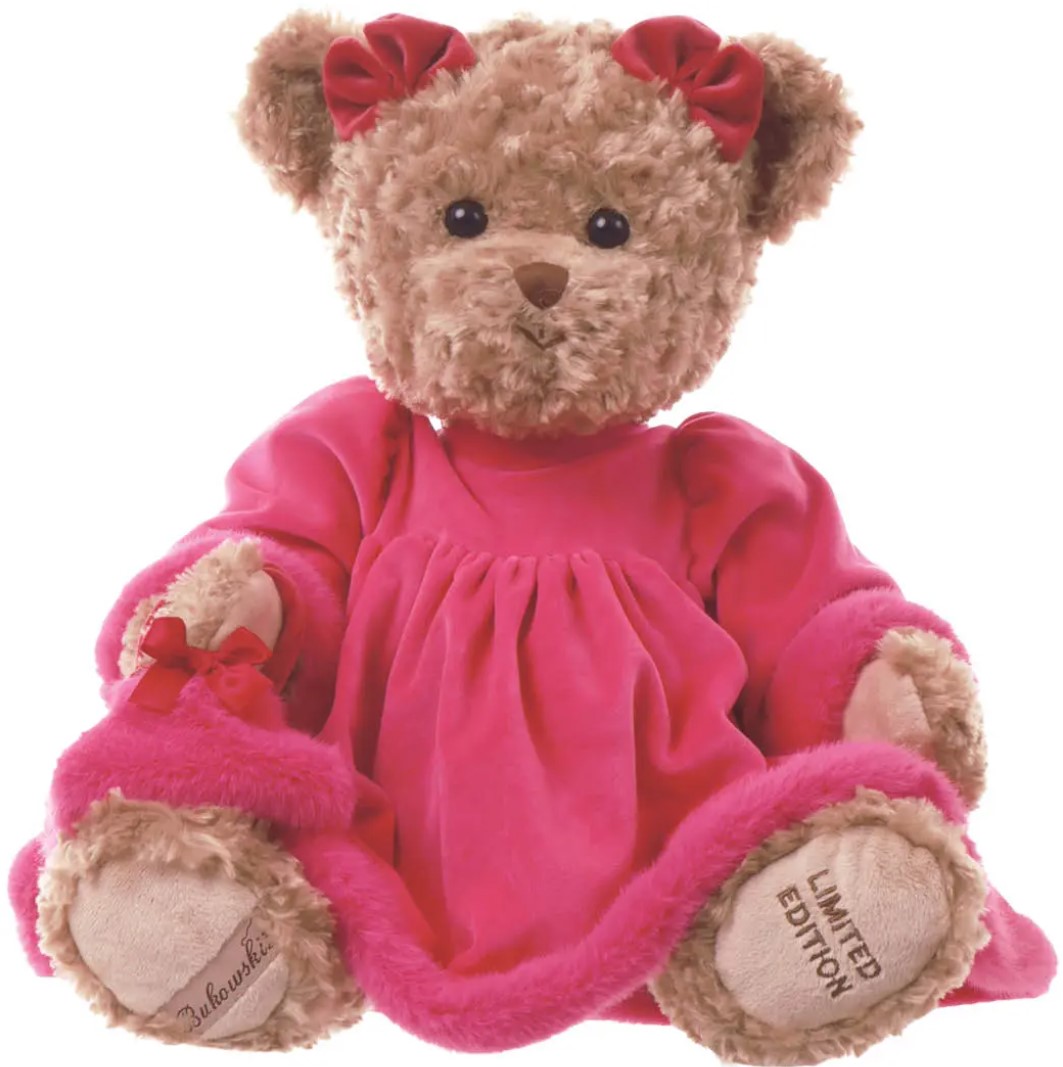 Коричневый медвежонок Filippa в красном платье, 50 см.