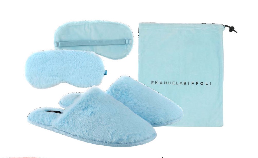 Оригинальные Дорожный набор Emanuela Biffoli RELAX TIME BLUE маска для сна и тапочки артикул 76119 купить с доставкой в Москве, цены - интернет-магазин Silk-Dreams.ru