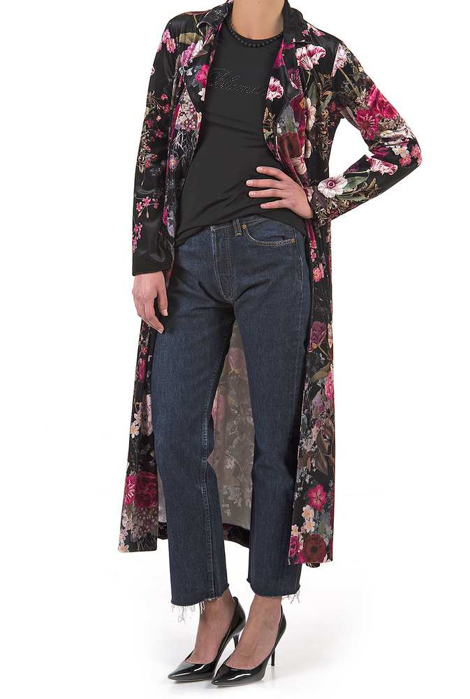 Женственный стильный халат от легендарного итальянского производителя элитного домашнего текстиля Blumarine вы можете приобрести в интернет-магазине «Silk-Dreams». Крупный цветочный узор на фоне черного полотна смотрится ярко и празднично. Изделие имеет классический крой: английский воротник, пояс, прямой рукав, длинные полы. Материал изготовления – полиэстер с добавлением стрейча. Длинный халат от Blumarine можно приобрести и в качестве подарка на любое торжество: элитная итальянская домашняя одежда порадует самых взыскательных модниц.