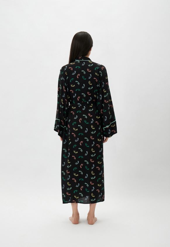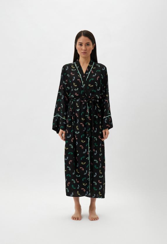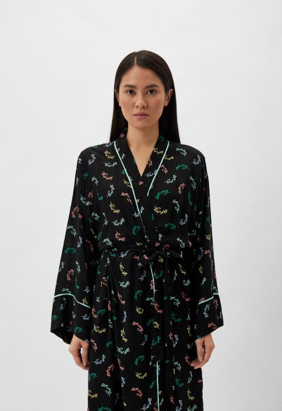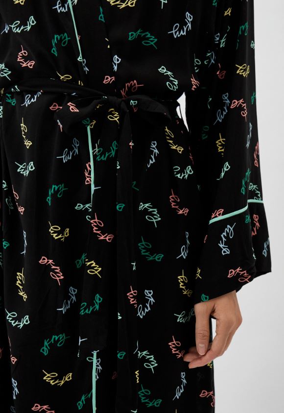 Женский халат DKNY, стиль кимоно. Модель FIELD OF DAISIES от торговой марки DKNY — классическое решение женского домашнего халата для тех, кто предпочитает верность традициям в каждой детали. Марка DKNY хорошо известна покупателям по всему миру как производитель элитного домашнего текстиля премиум-класса. Халат изготовлен из вискозы. Модель кимоно черного цвета украшена рисунком. Сочетание безупречного европейского стиля и великолепного качества делает этот халат не только отличным приобретением для собственного домашнего гардероба, но и практичным и стильным подарком на любое торжество. Материал: 100% вискоза.