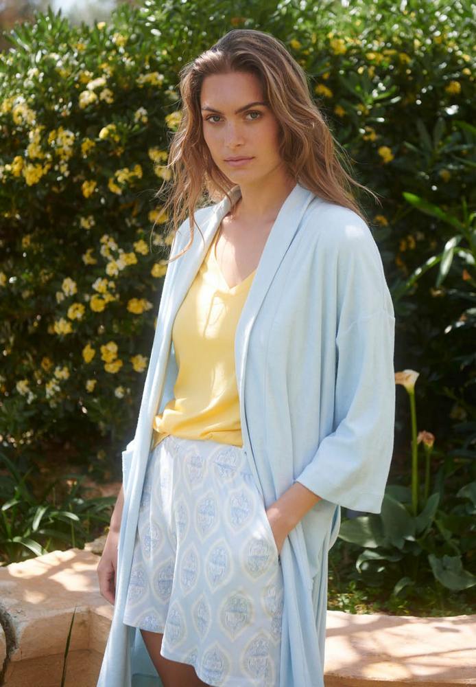 Премиальный Халат Hanro SLEEP LOUNGE LIGHT BLUE артикул 76001-76002 купить с доставкой в Москве, цены - интернет-магазин халатов и домашнего текстиля №1 в России