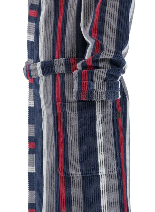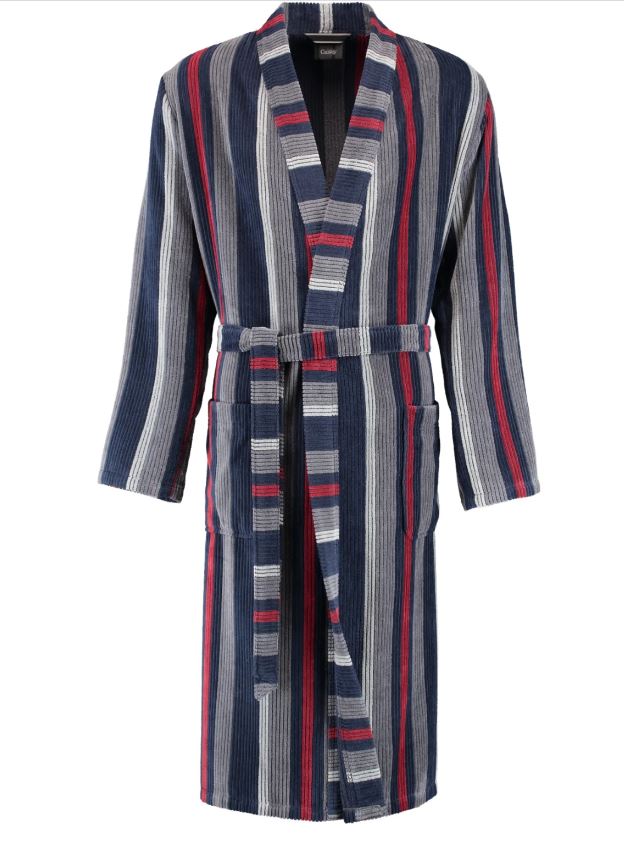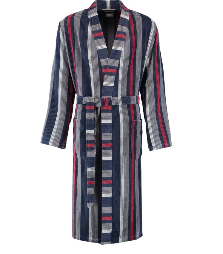 Мужской халат-кимоно CAWO 1837 в сине-графитовом цвете впечатляет превосходным качеством премиум-класса и модным дизайном в полоску. Модная структура идеально согласованный выбор цветов в полоску и высококачественная велюровая текстура делают этот лаконичный халат-кимоно по-настоящему привлекательным! Декоративная кайма того же цвета в направлении, противоположном полосам вдоль воротника кимоно и выреза халата, эффектно привлекает внимание, выгодно подчеркивая вашу мужественность. Классический крой кимоно, длинный, карманы – именно так должен выглядеть традиционный мужской халат, соединяющий в себе удобство и стиль. Материал изготовления – 100% хлопок. Этот высококачественный и легкий в уходе мужской халат в стиле кимоно легко стирается при температуре 60 °C в машине и желательно его высушить в сушильной машине. Отдохните с удовольствием дома в халате от производителя бренда CAWO. Халат CAWO будет прекрасным подарком мужу, брату, отцу на день рождения или другой праздник.