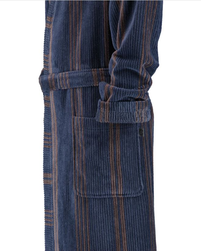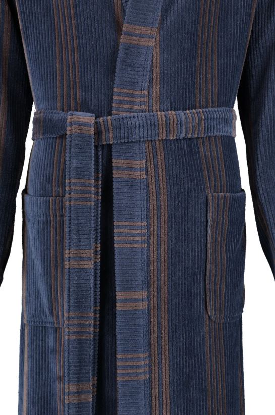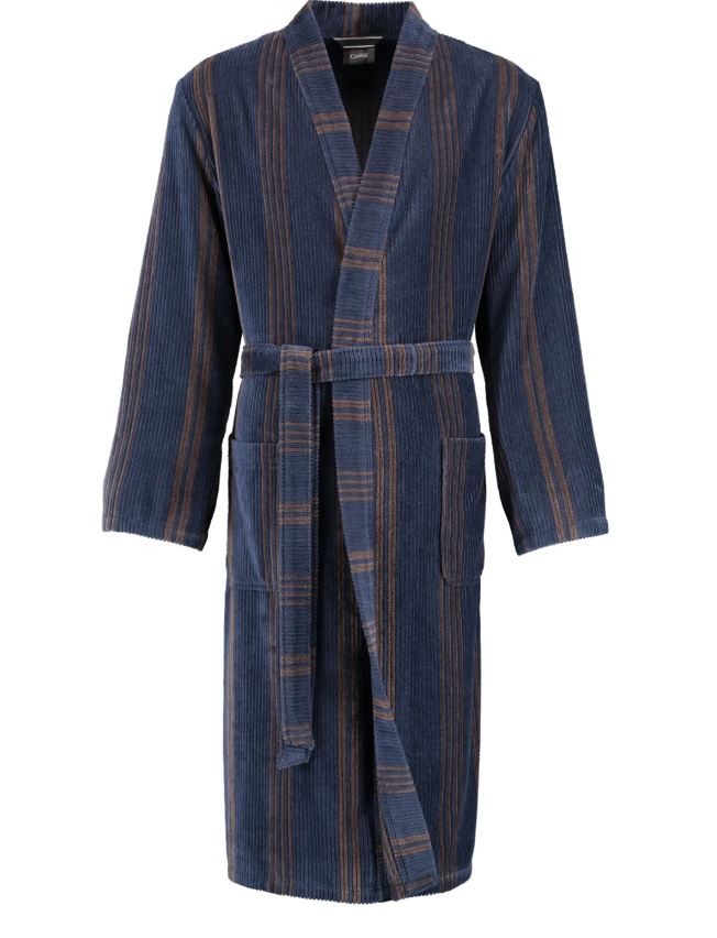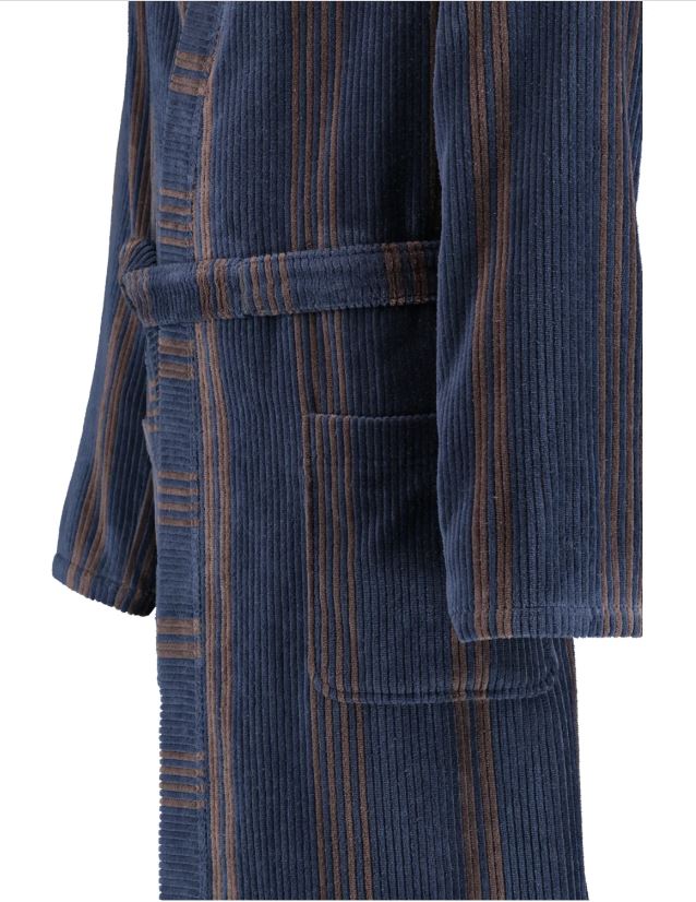 Этот первоклассный мужской халат CAWO 2508 синего цвета с бежевыми полосками, обеспечивающий высокий комфорт при ношении, обеспечит вам хорошее настроение. Элегантный фасон кимоно и необычный вельветовый дизайн делают мужскую модель Caw? особенно приятным. Этот привлекательный халат в вертикальную полоску с эффектной структурой создан для первого утреннего кофе и расслабляющих часов во время оздоровительных и развлекательных мероприятий. Классический крой кимоно, длинный, карманы – именно так должен выглядеть традиционный мужской халат, соединяющий в себе удобство и стиль. Материал изготовления – 100% хлопок. Этот высококачественный и легкий в уходе мужской халат в стиле кимоно легко стирается при температуре 60 °C в машине и желательно его высушить в сушильной машине. Отдохните с удовольствием дома в халате от производителя бренда CAWO. Халат CAWO будет прекрасным подарком мужу, брату, отцу на день рождения или другой праздник.