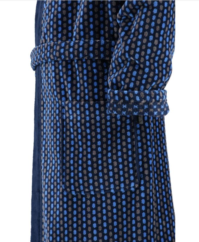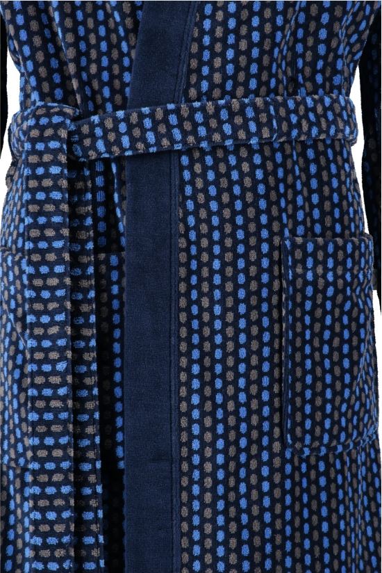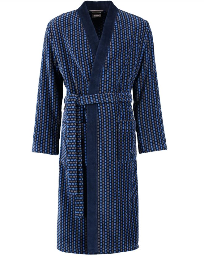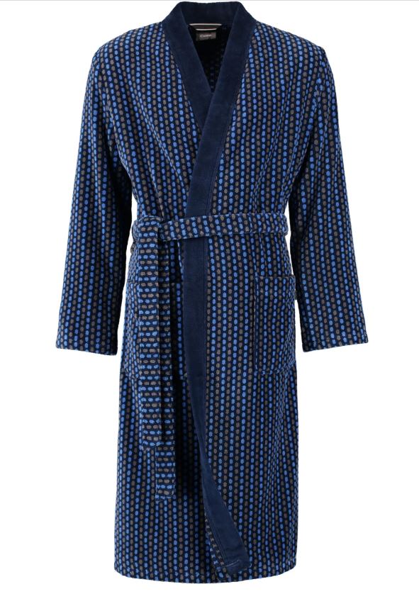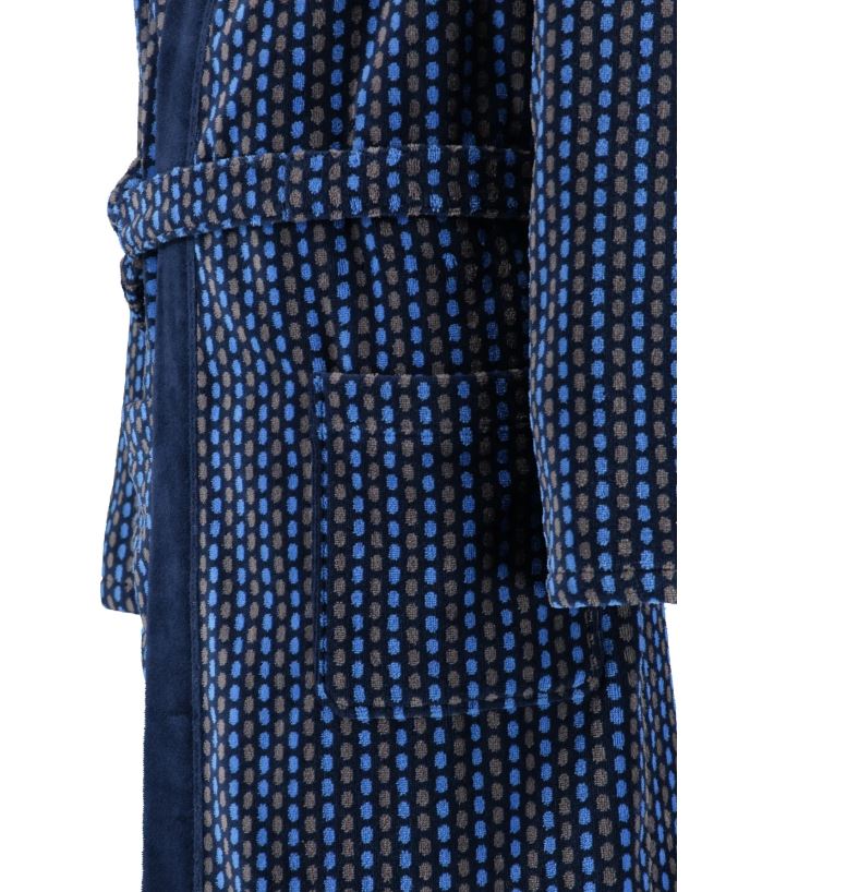 Этот мужской халат CAWO в стиле кимоно выполнен из благородного качественного велюра, изготовленного из 100% хлопка. Современный графический рисунок делает этот халат привлекательным. Данная модель немецкого бренда CAWO выполнена в насыщенном синем с серым цвете цвете. Классический крой кимоно, длинный, карманы – именно так должен выглядеть традиционный мужской халат, соединяющий в себе удобство и стиль. Материал изготовления – 100% хлопок. Этот высококачественный и легкий в уходе мужской халат в стиле кимоно легко стирается при температуре 60 °C в машине и желательно его высушить в сушильной машине. Отдохните с удовольствием дома в халате от производителя бренда CAWO. Халат CAWO будет прекрасным подарком мужу, брату, отцу на день рождения или другой праздник.