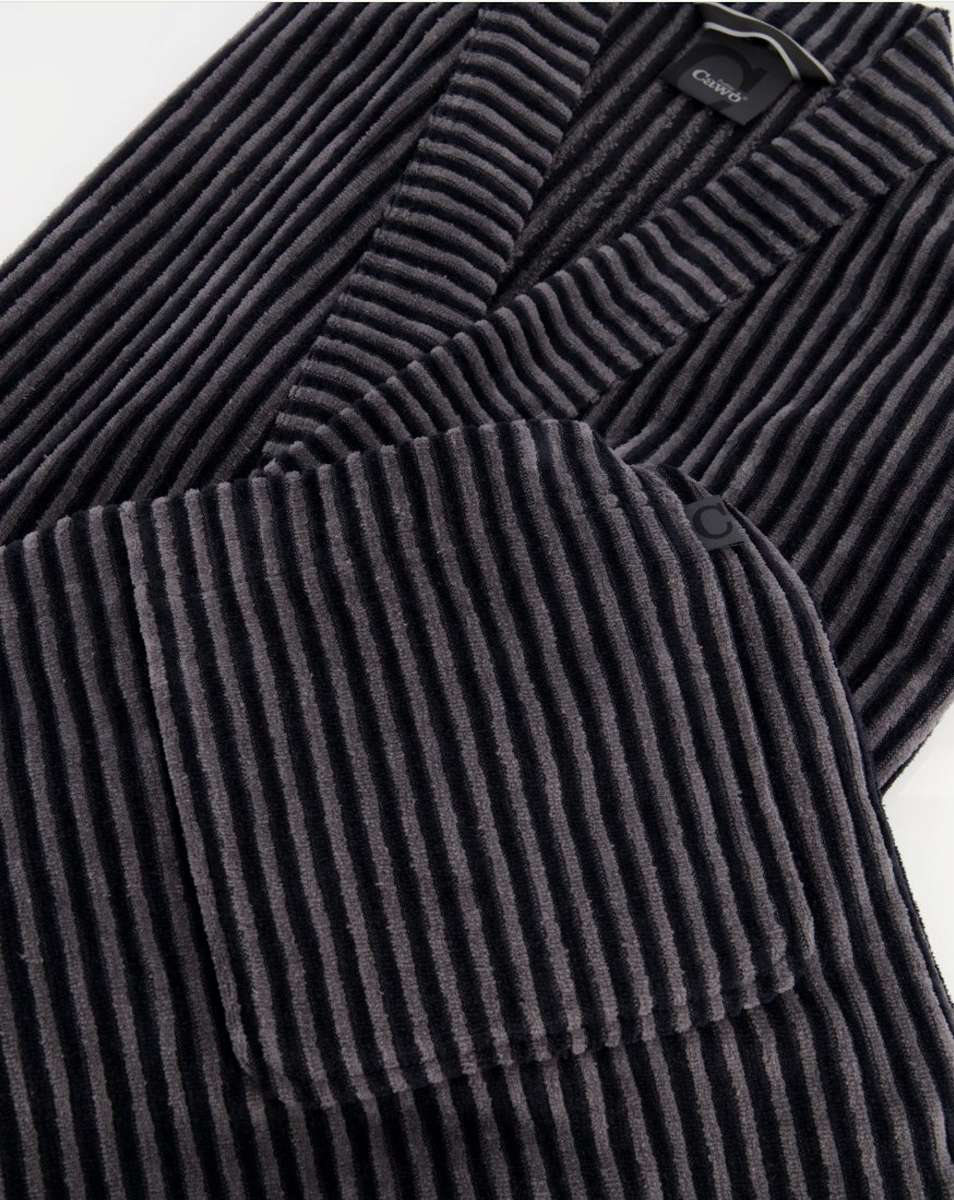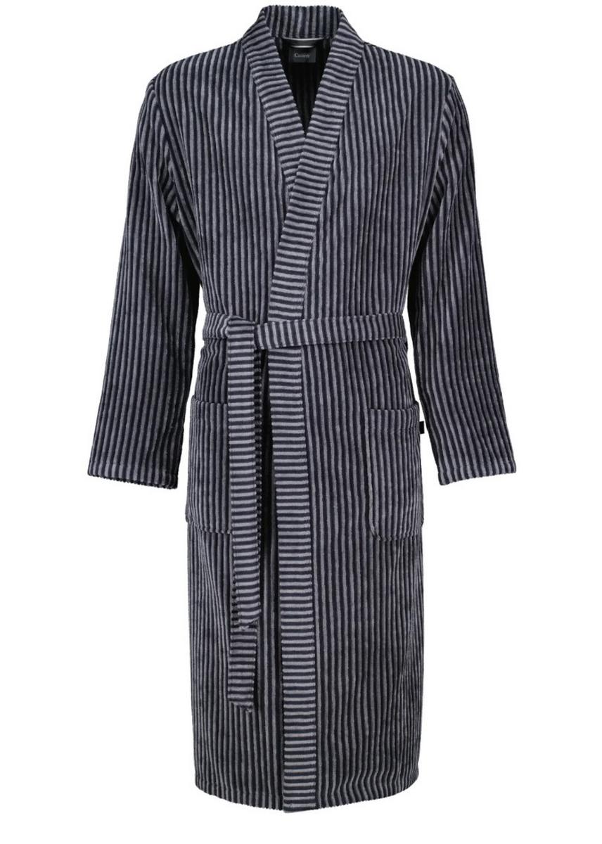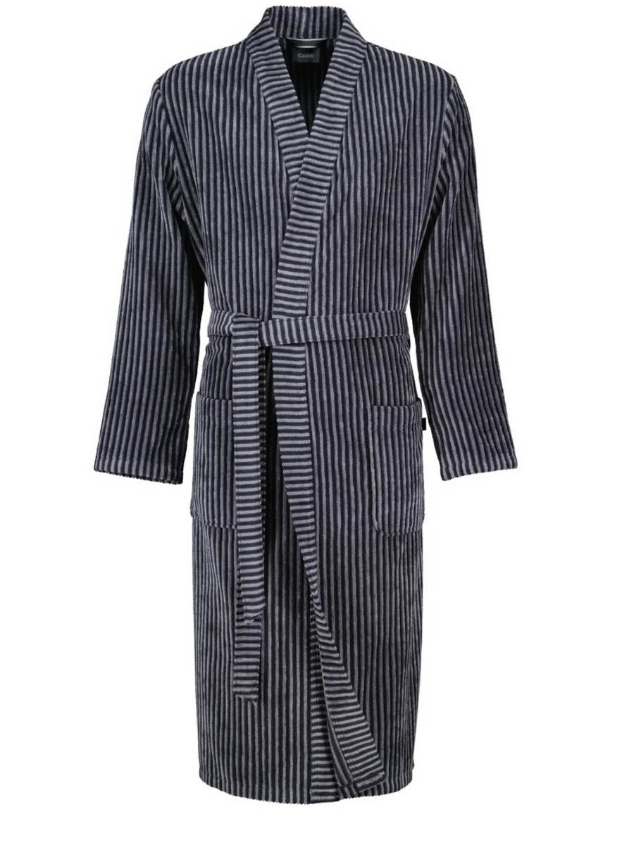 Привлекательный полосатый вид. Велюр высокого качества. В интернет-магазине «Силк Дримс» вы найдете богатый ассортимент элитных мужских халатов от ведущих европейских производителей. Данная модель немецкого бренда CAWO выполнена в темно-сером цвете. Классический крой кимоно, средняя длина, карманы – именно так должен выглядеть традиционный мужской халат, соединяющий в себе удобство и стиль. Материал изготовления – 100% хлопок. Этот высококачественный и легкий в уходе мужской халат в стиле кимоно легко стирается при температуре 60°C в машине и желательно его высушить в сушильной машине. Отдохните с удовольствием дома в халате от производителя бренда CAWO. Халат CAWO будет прекрасным подарком мужу, брату, отцу на день рождения или другой праздник.