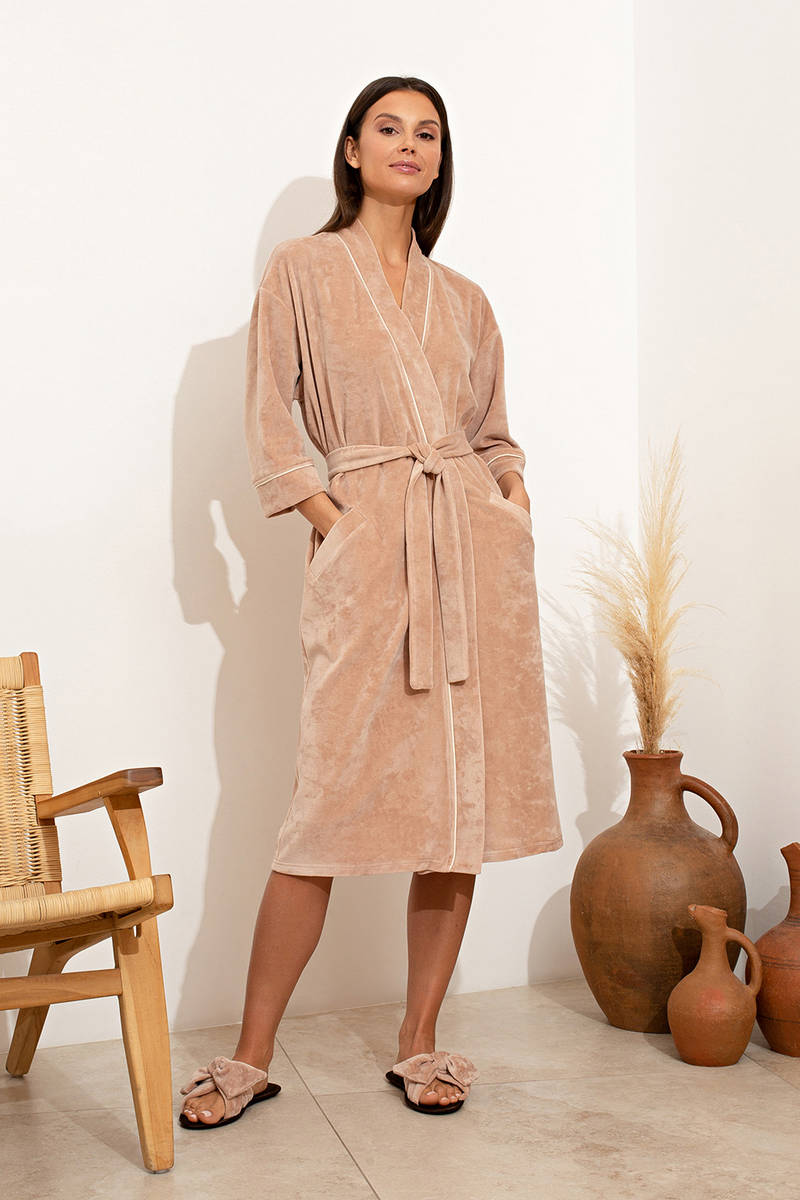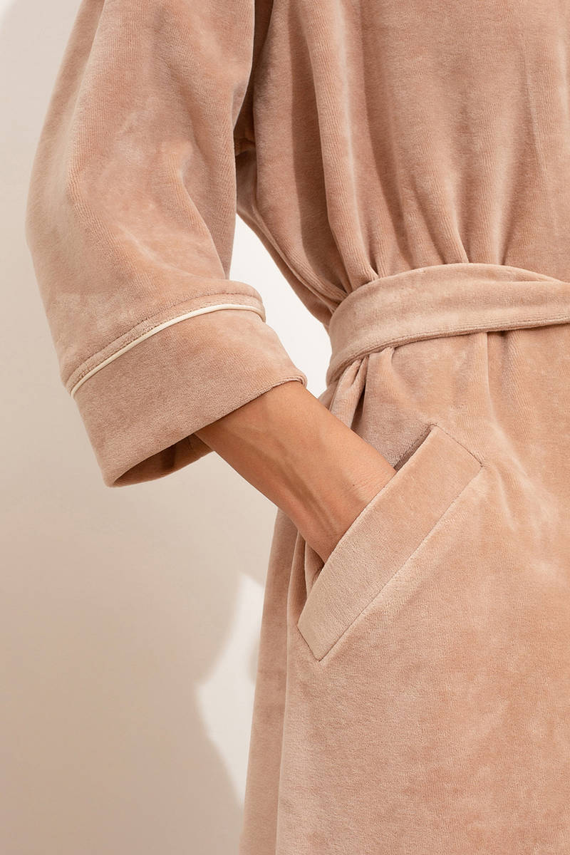 Премиальный Халат Petit Pas VEL-003 Velour бежевый артикул 78325-78326-78327 купить с доставкой в Москве, цены - интернет-магазин халатов и домашнего текстиля №1 в России