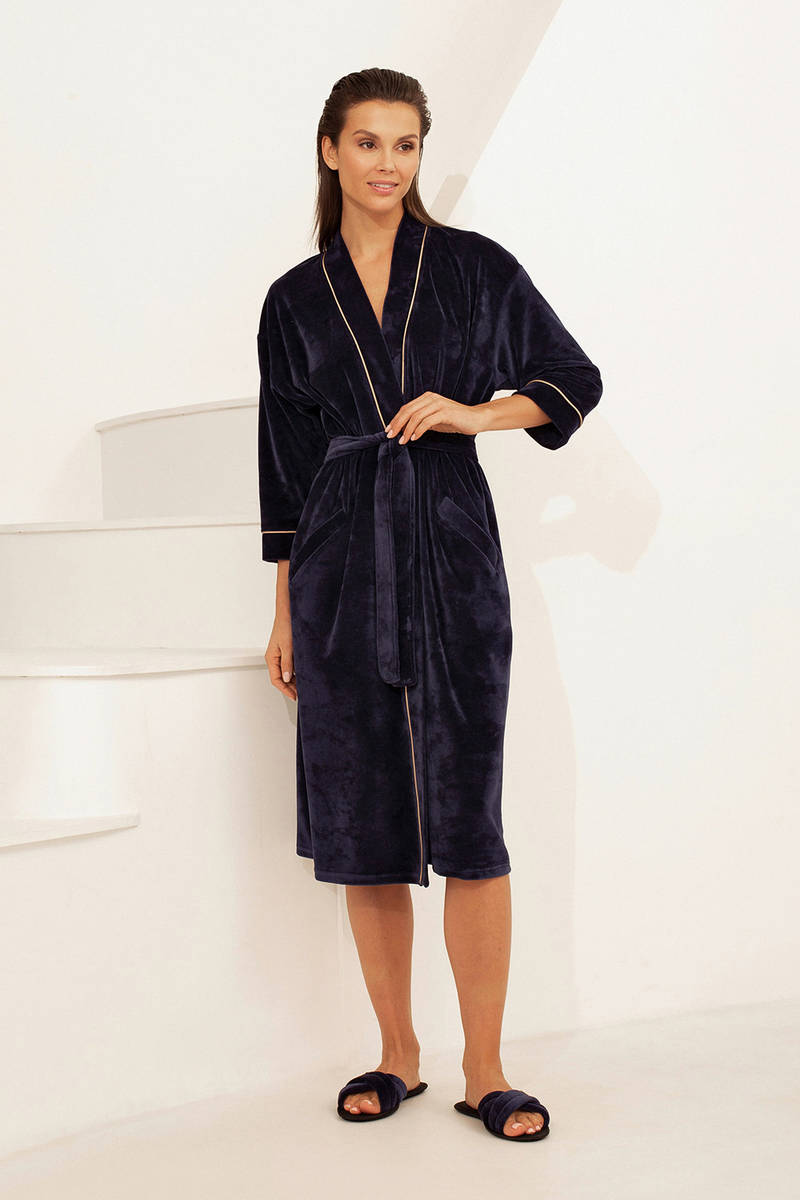 Премиальный Халат Petit Pas VEL-003 Velour синий артикул 78331-78332-78333 купить с доставкой в Москве, цены - интернет-магазин халатов и домашнего текстиля №1 в России