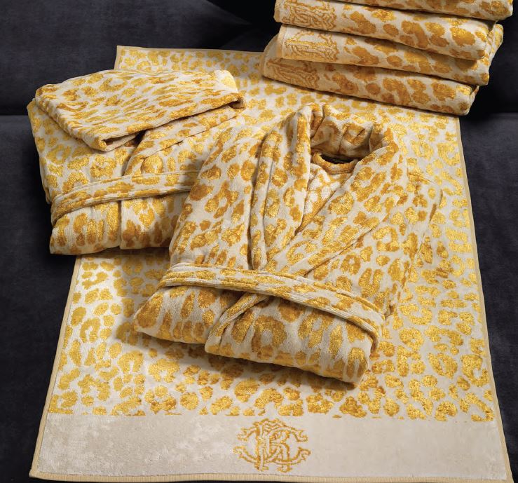 Премиальный Халат Roberto Cavalli SNOW LEOPARD 001 Gold артикул 88198-88199-88200 купить с доставкой в Москве, цены - интернет-магазин халатов и домашнего текстиля №1 в России