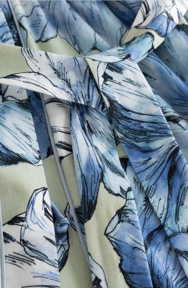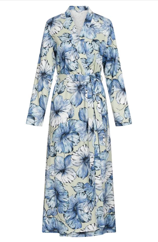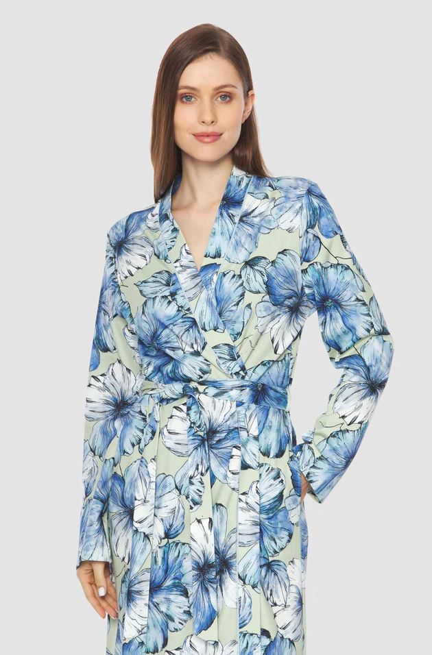 Роскошный халат. Халат с запахом украшен романтическим цветочным узором.