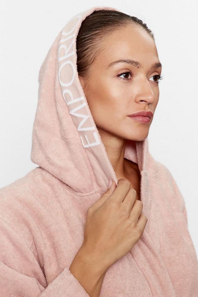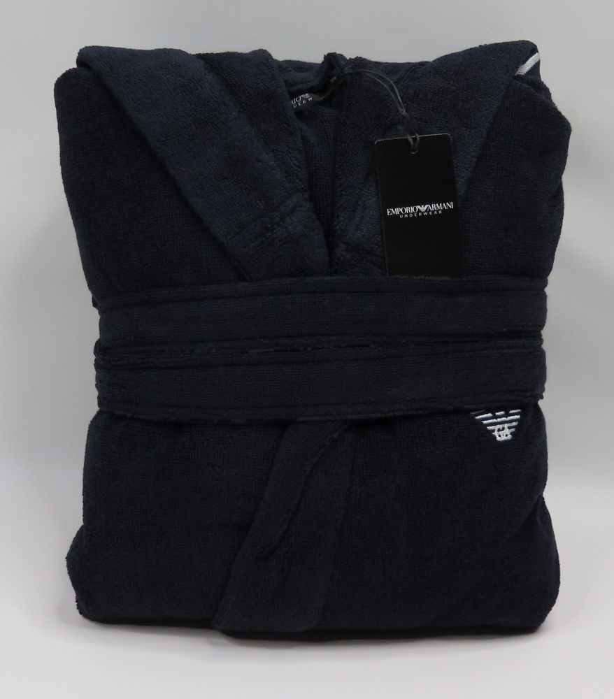 Итальянская легендарная марка Emporio Armani хорошо известна европейским покупателям как производитель изысканной домашней одежды класса люкс, в том числе женских халатов. Данная модель, выполненная в синем цвете, не является исключением. Очаровательный халат с капюшоном дополнен накладными карманами и поясом. Край капюшона отделан вышивкой бренда. Средняя длина одежды обеспечивает ощущение особенного комфорта и защищенности тела, что особенно приятно, например, после горячей ванны. Роскошная мягкая фактура натурального хлопкового полотна, из которого изготовлен халат, позволяет коже дышать и поддерживать оптимальную температуру. Такой халат от Emporio Armani станет вашей любимой домашней одеждой на долгие годы!
