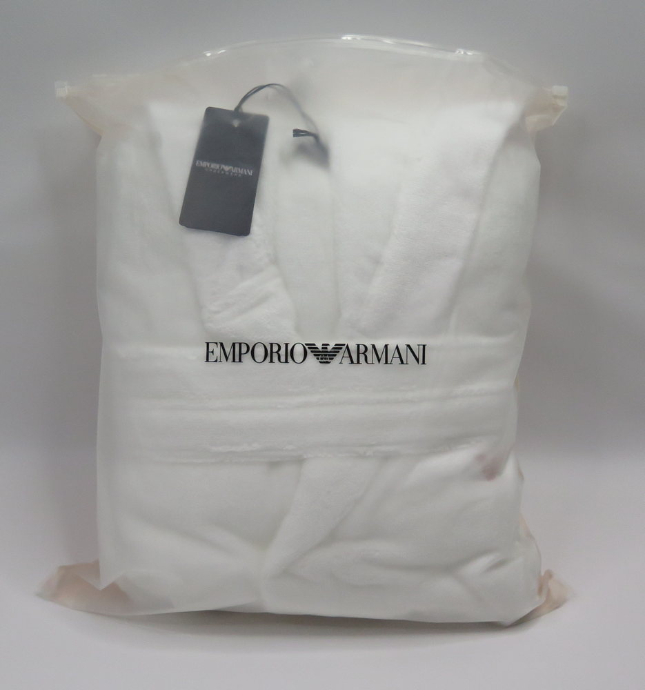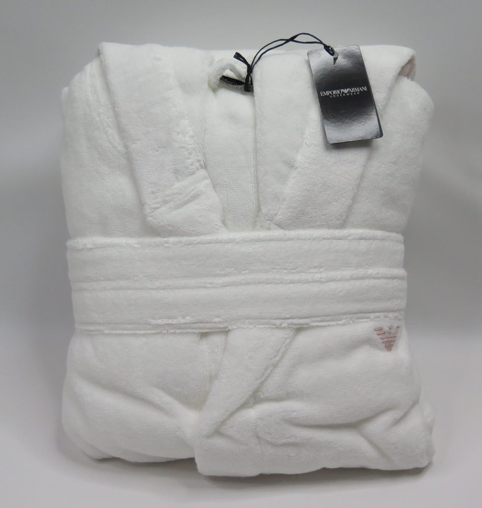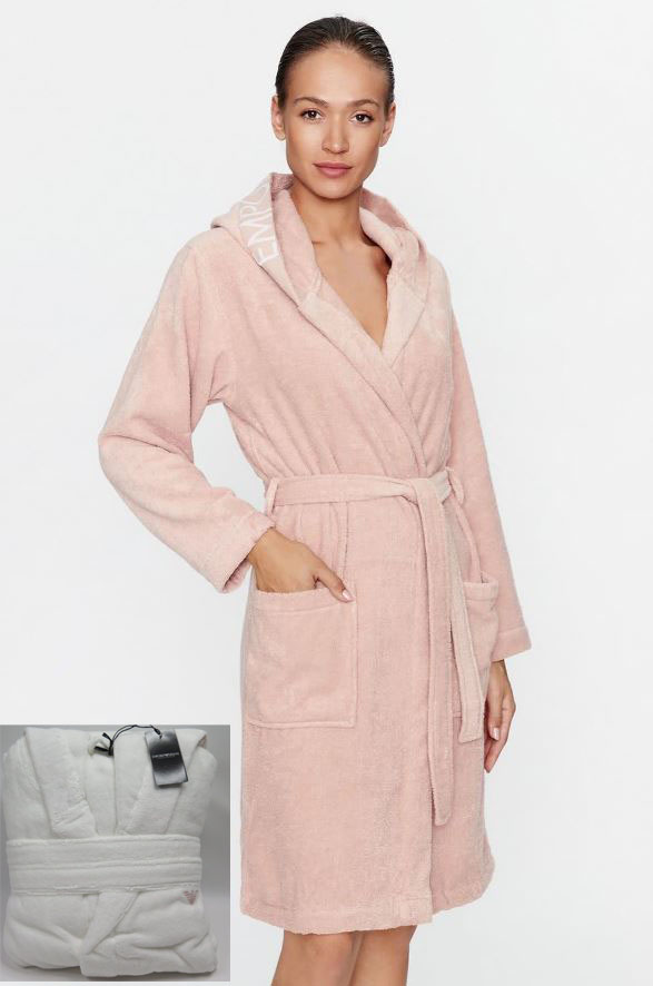 Итальянская легендарная марка Emporio Armani хорошо известна европейским покупателям как производитель изысканной домашней одежды класса люкс, в том числе женских халатов. Данная модель, выполненная в белом цвете, не является исключением. Очаровательный халат с капюшоном дополнен накладными карманами и поясом. Край капюшона отделан вышивкой бренда. Средняя длина одежды обеспечивает ощущение особенного комфорта и защищенности тела, что особенно приятно, например, после горячей ванны. Роскошная мягкая фактура натурального хлопкового полотна, из которого изготовлен халат, позволяет коже дышать и поддерживать оптимальную температуру. Такой халат от Emporio Armani станет вашей любимой домашней одеждой на долгие годы!