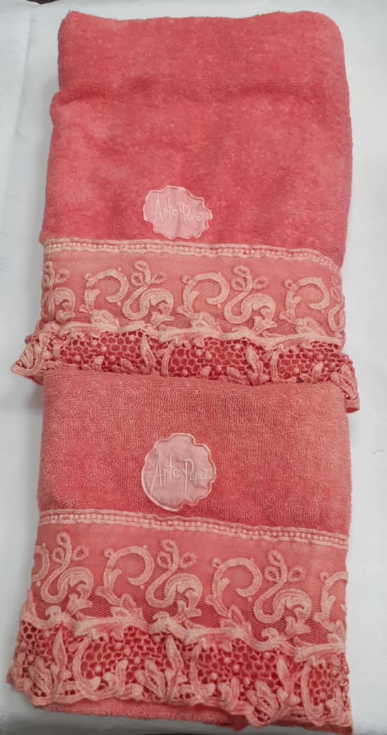Великолепные комплекты полотенец украшены натуральным кружевом и выполненны в технике «Stone wash» придающей поверхности эффект старения и потертости.