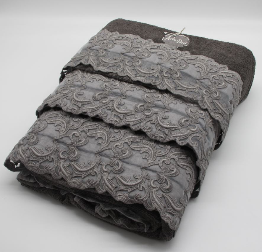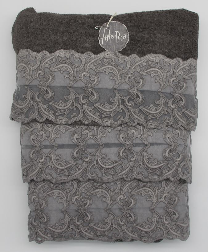 Великолепные комплекты полотенец украшены натуральным кружевом и выполненны в технике «Stone wash» придающей поверхности эффект старения и потертости.