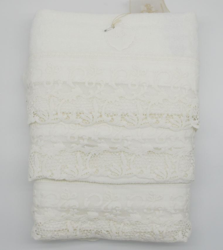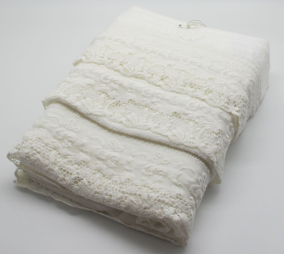 Великолепные комплекты полотенец украшены натуральным кружевом и выполненны в технике «Stone wash» придающей поверхности эффект старения и потертости.