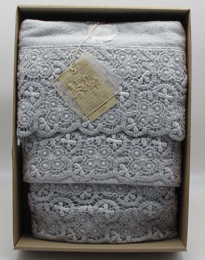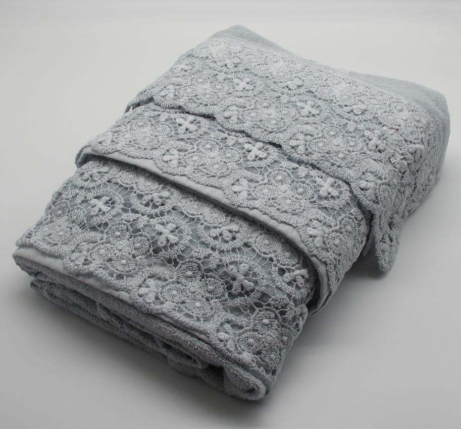 Великолепные комплекты полотенец украшены натуральным кружевом и выполненны в технике «Stone wash» придающей поверхности эффект старения и потертости.