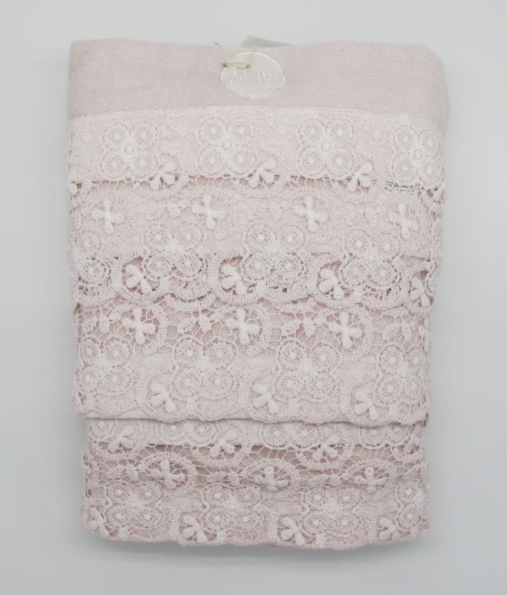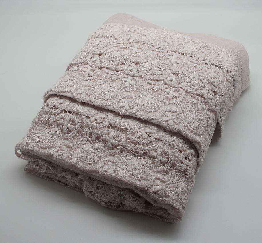 Великолепные комплекты полотенец украшены натуральным кружевом и выполненны в технике «Stone wash» придающей поверхности эффект старения и потертости.