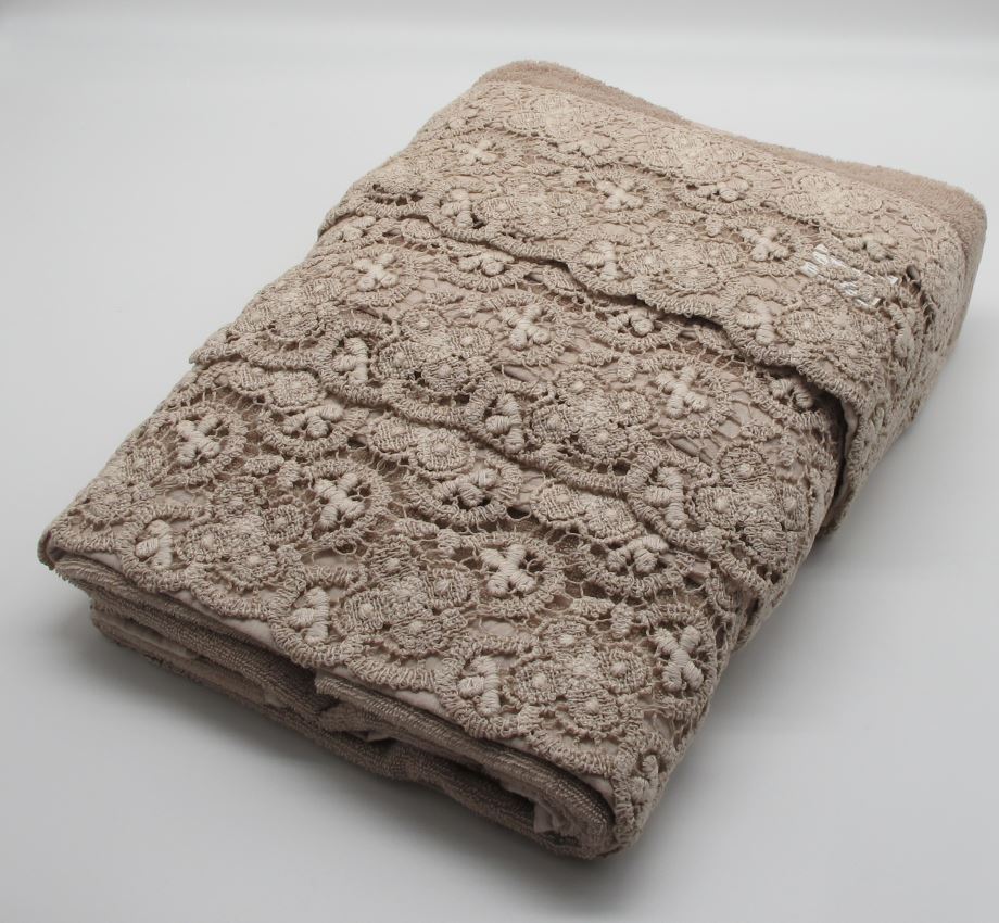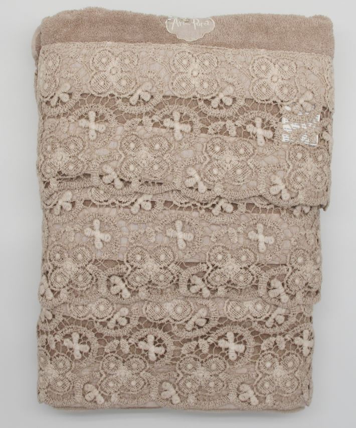 Великолепные комплекты полотенец украшены натуральным кружевом и выполненны в технике «Stone wash» придающей поверхности эффект старения и потертости.