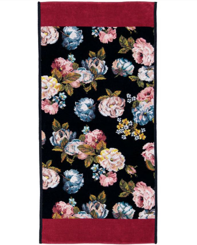 Основной цвет полотенца черный, бордюр бордовый. цвет полотенцаы.