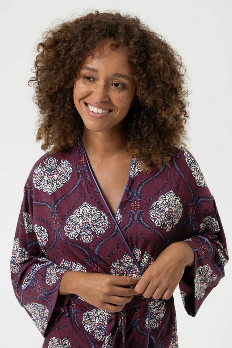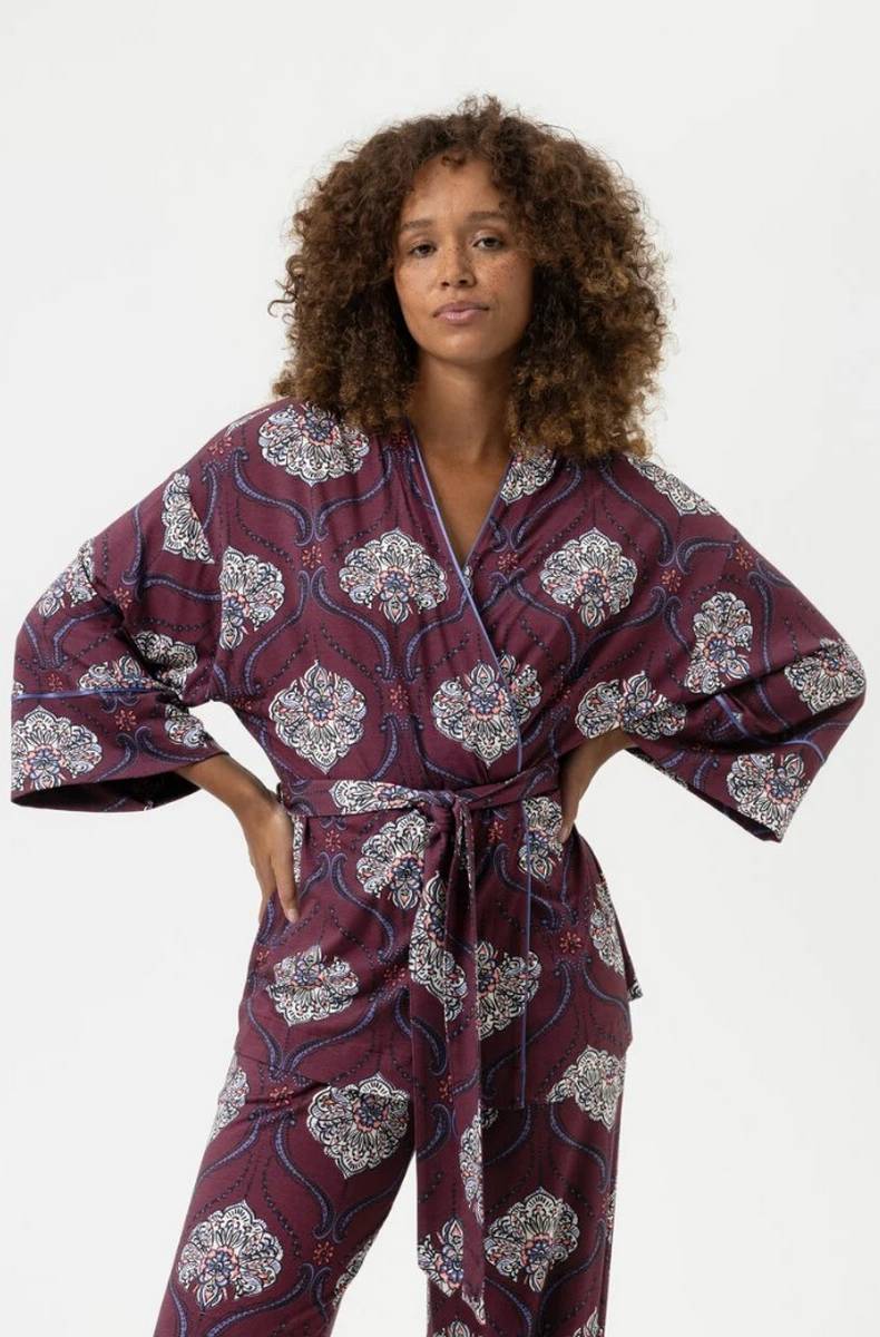 Роскошное кимоно из серии «Загадочные украшения» в цвете «бойзенберри» (тёмно-бордовый) поражает своим исключительным качеством.