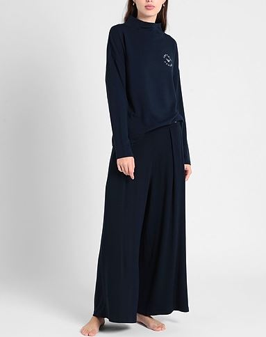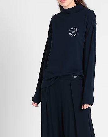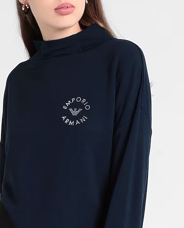Женский костюм. Свитер с длинными рукавами и свободные брюки. Эмблема Emporio Armani белого цвета вышита на свитере и брюках.