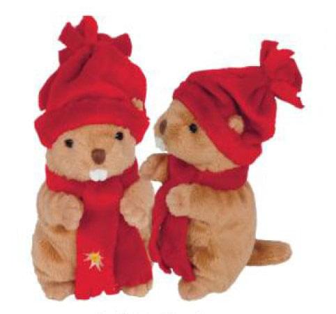 Маленькая бобры в красных шапочке и шарфе, 20 см.