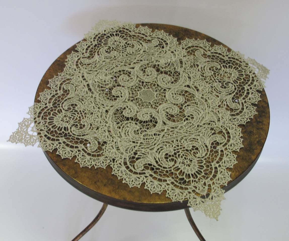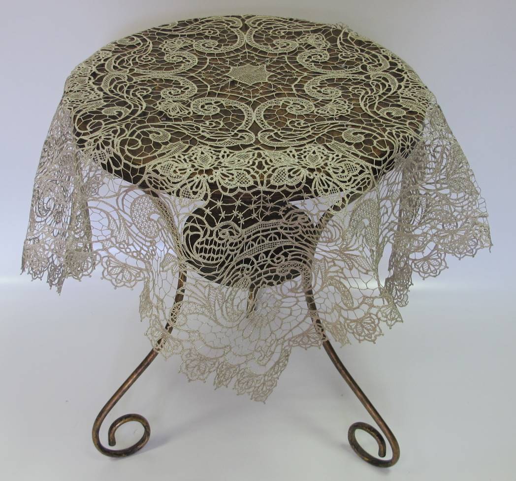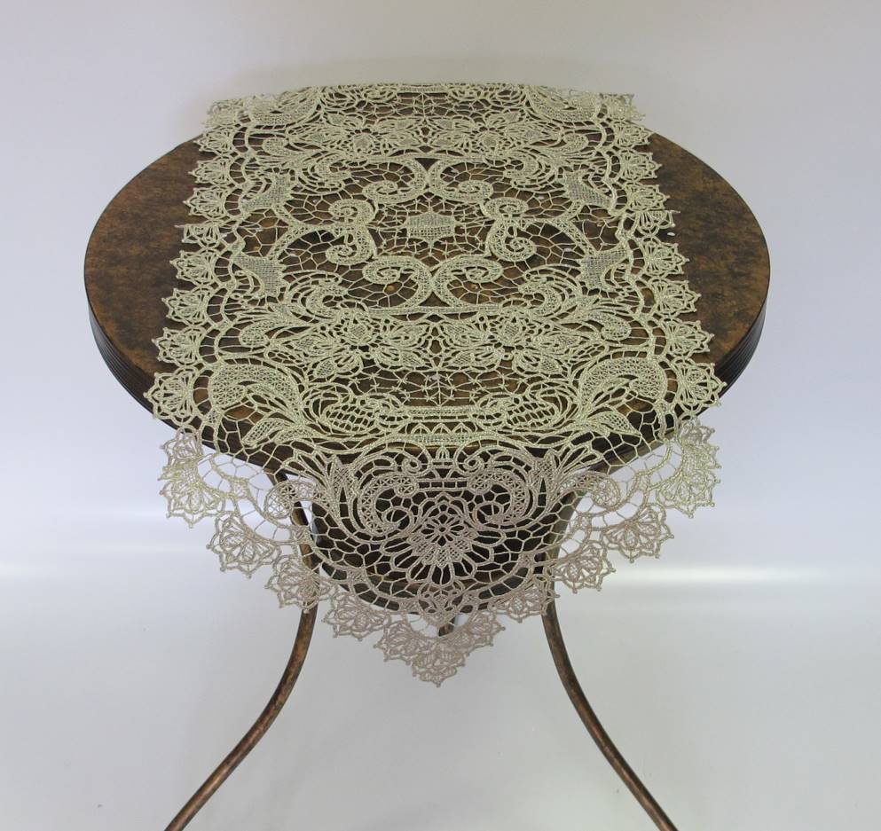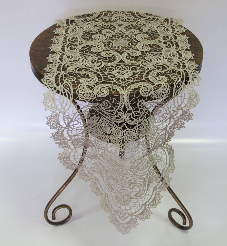 В набор входит пять предметов: скатерть 90х90 см, дорожка 40х145 см, дорожка 36х92 см, дорожка 2 штуки 28х60 см.