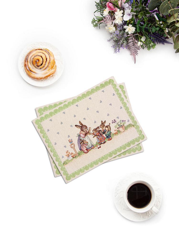 Премиальный Набор подтарельников из двух штук Le Gobelin ЗАЯЧЬИ СКАЗКИ зеленый 35х45 артикул 81739 купить с доставкой в Москве, цены - интернет-магазин №1 в России