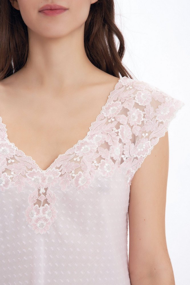 Ночная рубашка из нежнейшего хлопка Mussola пастельного розового цвета от бренда Flora Lastraioli с красивейшим кружевом на груди выполнена полностью вручную в ателье Flora Lastraioli.