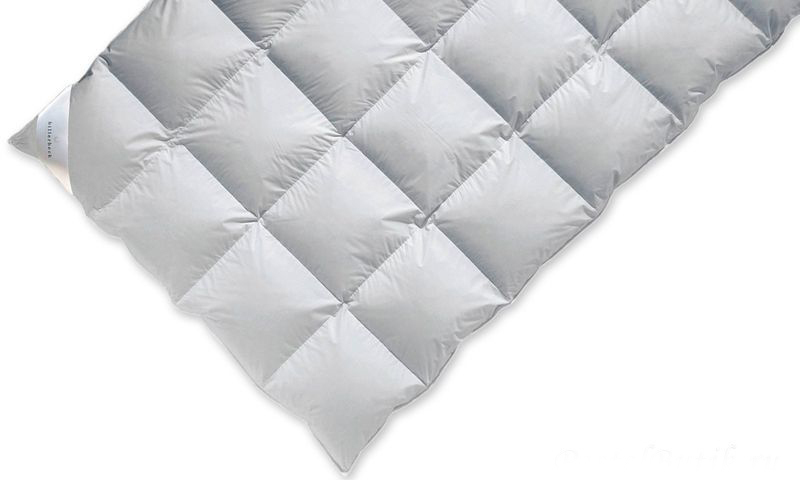 Одеяло имеет квадратную стежку, что препятствует миграции пуха внутри изделия.
