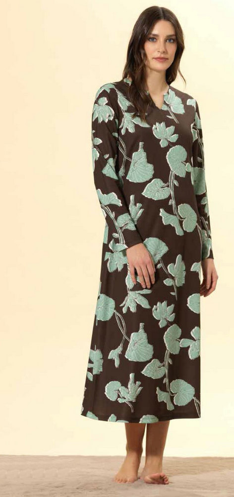 Платье домашнее Bisbigli 92123-CC24 111 testa di moro/menta (коричневое) артикул 91110-91111-91112-91113 купить с доставкой в Москве, цены - интернет-магазин Silk-Dreams.ru