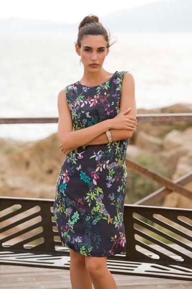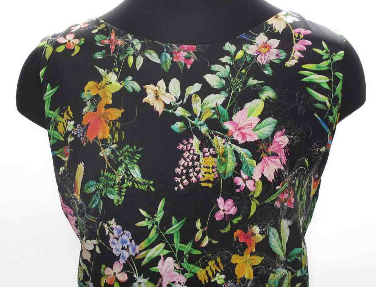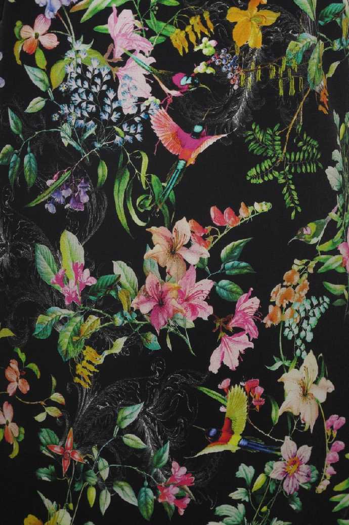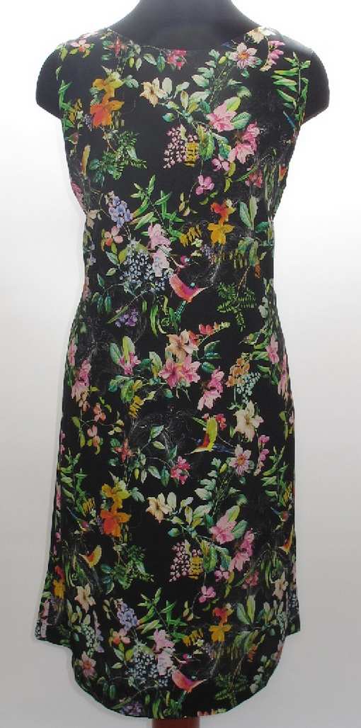 Великолепная модель из коллекции pred-a-porter. Платье классического фасона, средней длины (92 см), без рукавов, на черном фоне мелкие цветы, над которыми порхают колибри. В этом платье вы не останетесь незамеченной. 100 % CV (modal).