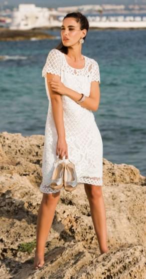 У каждой женщины должно быть маленькое черное платье… Такое, как эта модель из коллекции pred-a-porter от Евы Б.Битцер. Классическая модель средней длины (102 см) , короткий рукав, круглый вырез, застежка-молния на спине и подкладка в тон кружеву. Оно уместно и на деловой встрече, и на романтическом ужине. 60 % poliamid, 40 % cotton.