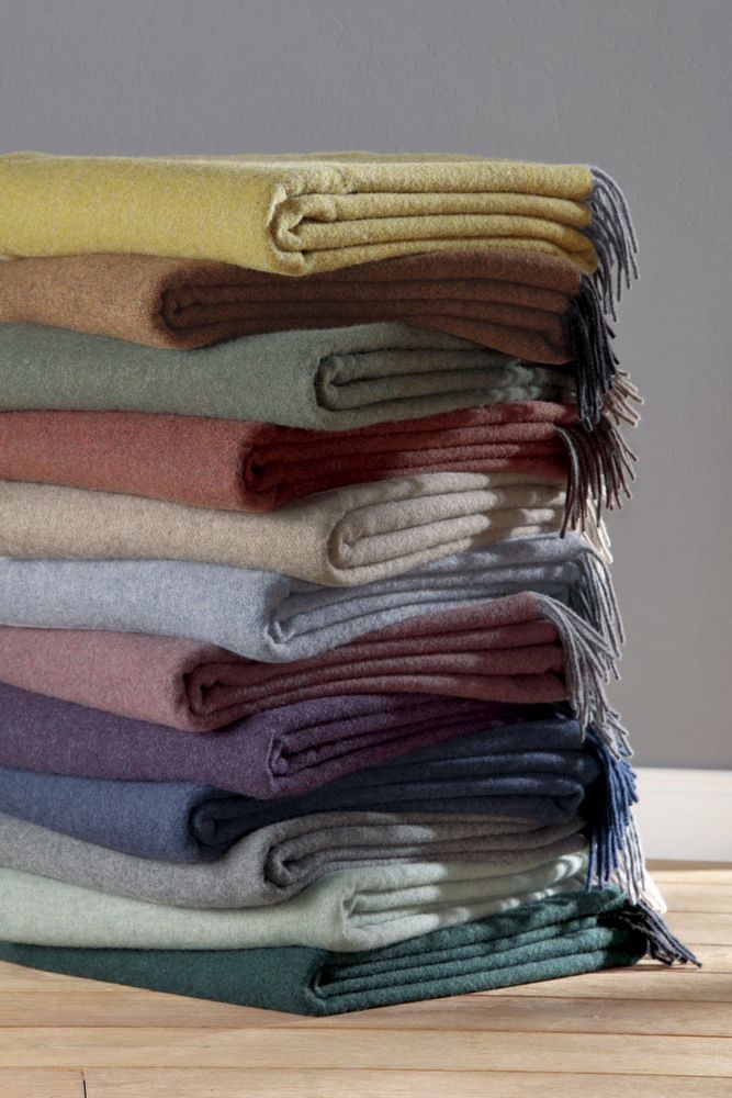 Бахрома имеет тот же цвет, что и задняя часть этого двухстороннего роскошного шерстяного пледа.