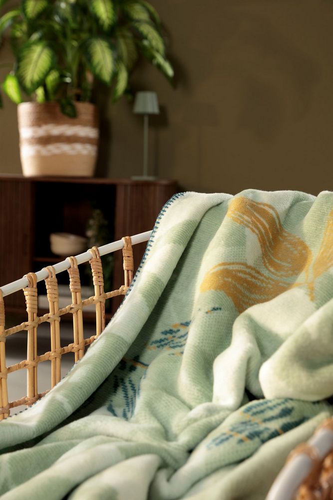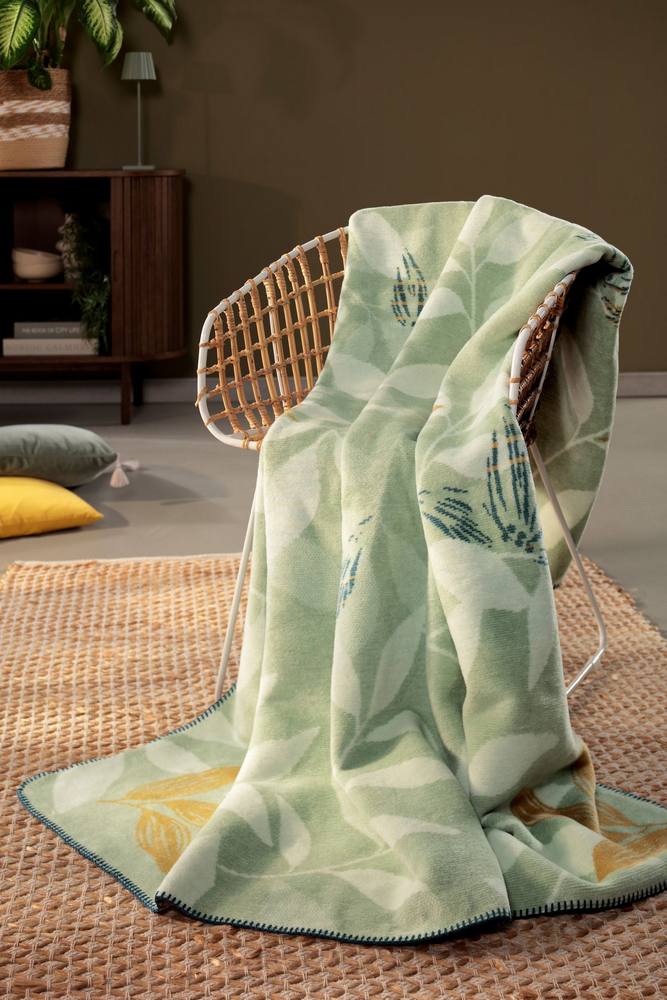 Нежный рисунок из листьев в гармоничных оттенках зеленого привнесет красоту природы прямо в вашу гостиную. Плед «Зелень» создает прекрасную атмосферу, идеально подходящую для часов отдыха. Плед действительно привлекает внимание не только своим великолепным цветочным узором и летними цветами, но и прекрасным качеством. На ощупь он очень мягкий и пушистый.