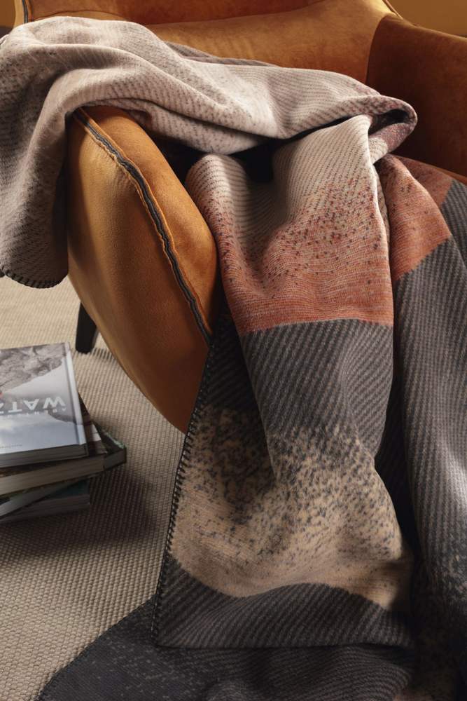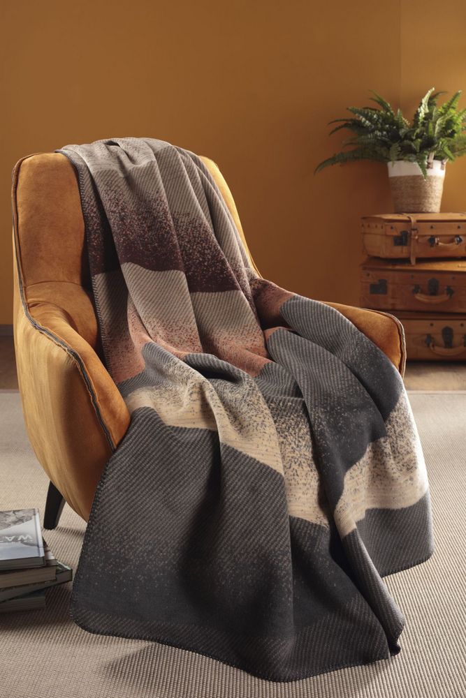 Волнообразный рисунок "Пустынная волна" и изящные структурные узоры на ярких цветных участках придают этому пледу от производителя Biederlack особый вид.