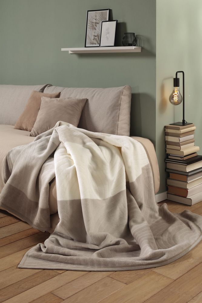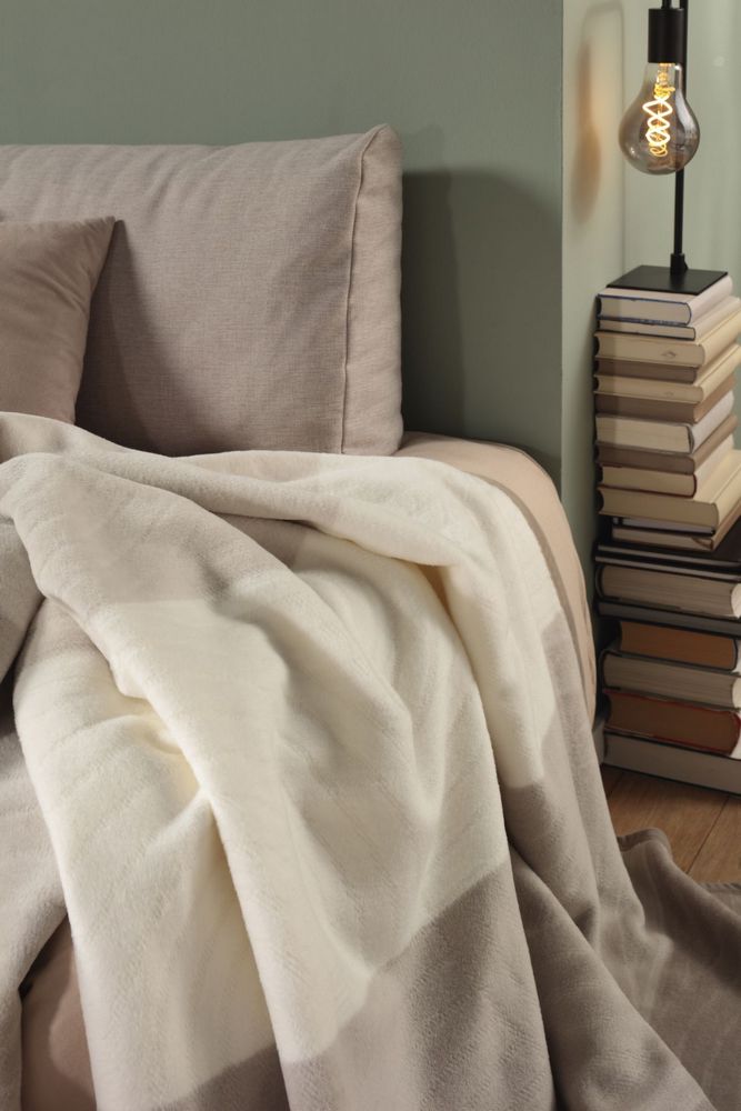 Одеяло «Feel Modern» сочетает в себе мягкие цвета и уникальную рельефную структуру, которая придает ему особую тактильность и глубину. Дизайн с широкими блочными полосами в гармоничных натуральных и бежевых тонах придает каждой комнате теплую и уютную атмосферу. Особая изюминка этого одеяла — мелкая рельефная структура, создающая на поверхности едва заметные круговые узоры. Структура не только обеспечивает привлекательный внешний вид, но и особенно приятное ощущение на коже.