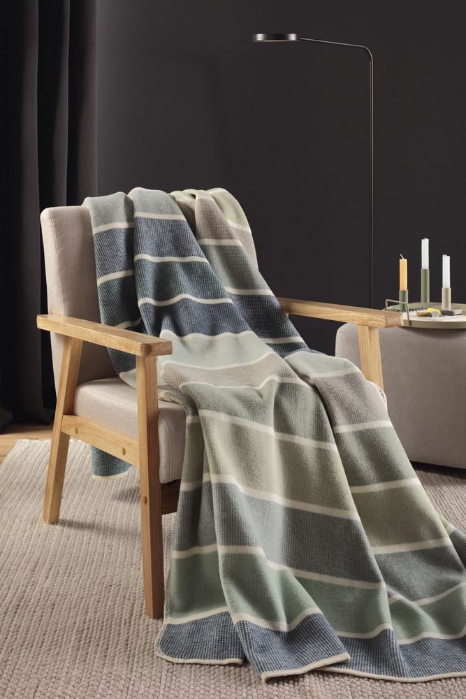 Плед «Cotton Lines» изготовлен из 100% натурального хлопка высокого качества. Это делает плед не только пушистым и мягким, но и особенно экологичным, поскольку хлопок является натуральным продуктом и, следовательно, не содержит искусственных волокон. Он также приятен для кожи и подходит для людей, страдающих аллергией. Универсальный плед, которое подарит вам хорошее самочувствие.