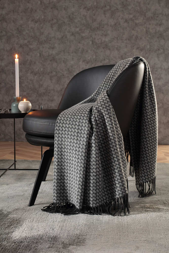 Элегантность оживает с этим высококачественным пледом с бахромой в серых тонах, выполненным из изысканной смеси материалов.