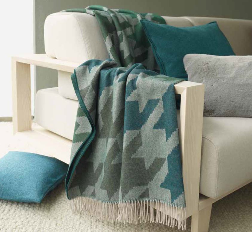В коллекции представлены уникальные пледы-покрывала из мохера, кашемира и шерсти мериноса.