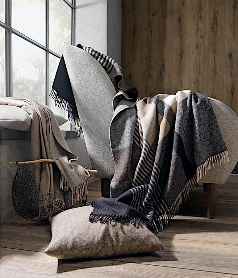 В коллекции представлены уникальные пледы из мохера, кашемира, шерсти ягненка и шерсти мериноса. От сезона к сезону меняются цвета и дизайны выпускаемых изделий, но всегда остается неизменным великолепное качество пледов.