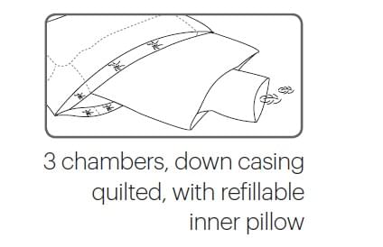 Трехкамерная подушка. Наполнитель - 90% пуха + 10% перо, покрытие - 100% хлопок.