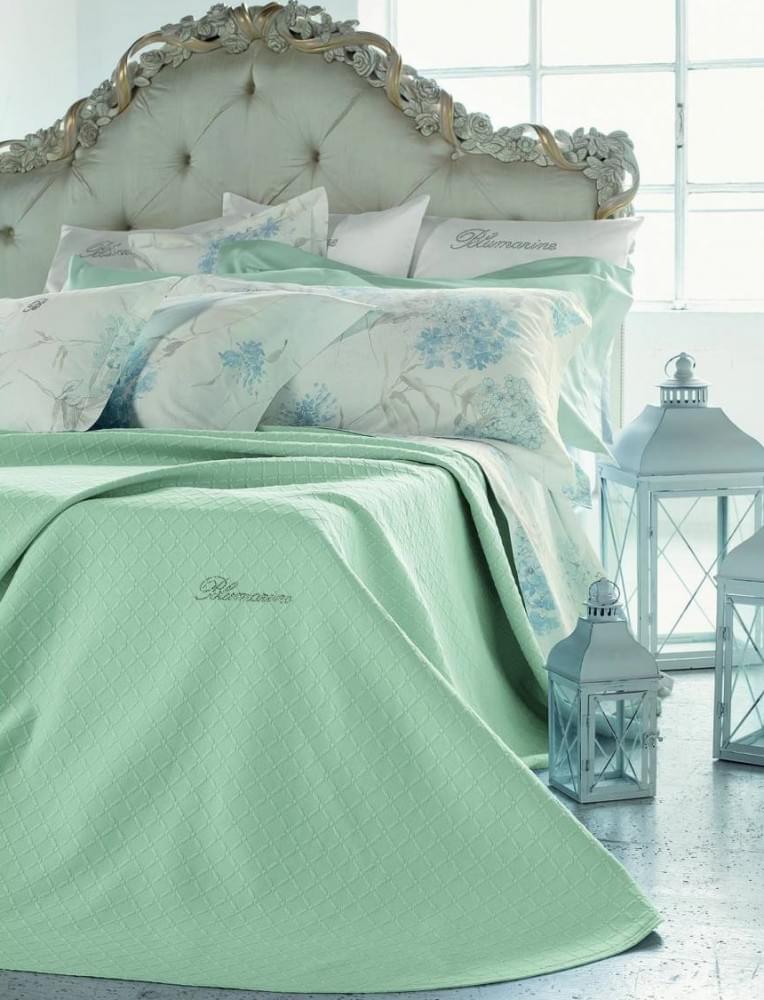 Неповторимый текстиль от итальянского бренда Blumarine украсит ваш дом и добавит интерьеру оригинальности. Стильное покрывало нежно-голубого цвета размером 270*265 см превосходно впишется в любую обстановку благодаря лаконичному дизайну: единственным украшением монохромного полотна служит выложенный стразами логотип бренда. Изделие, выполненное из натурального хлопка, отличается прочностью, долговечностью, на долгие годы сохраняет первоначальный внешний вид, форму, цвет. Приобрести такое покрывало можно и в качестве подарка близким и родным – такой стильный презент приятно их удивит!