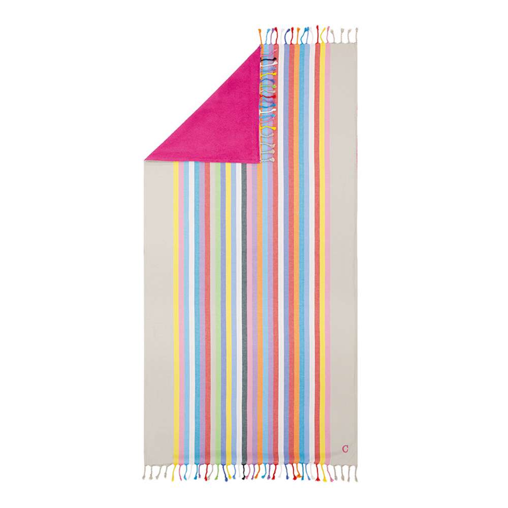 Элегантный стильный домашний текстиль класса люкс вы можете приобрести в интернет-магазине «Silk-Dreams». Легкое мягкое полотенце от немецкого бренда CAWO выполнено из высококачественного хлопка, отлично впитывающего влагу. Размер изделия – 90*180 см. Особого внимания заслуживает дизайн полотенца: у изделия одна сторона – из сатина с ярким полосатым принтом; оборотная часть однотонного синего цвета имеет махровую фактуру.