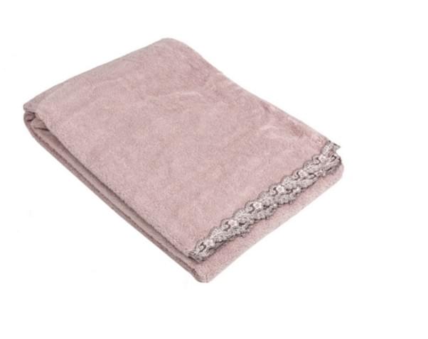 Полотенце махровое La Perla PETIT MAISON розовое с розовым кружевом 100х150