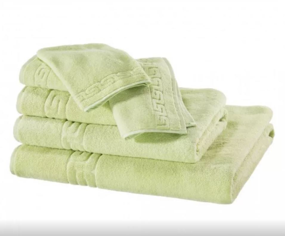 Премиальные салатовые однотонные махровые полотенца высшего качества Weseta серия Dreamflor 91 light green с бордюром Греческая дорожка.