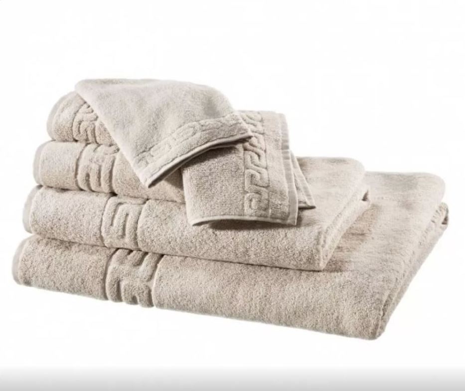 Премиальные серые однотонные махровые полотенца высшего качества Weseta серия Dreamflor 92 sand с бордюром Греческая дорожка.