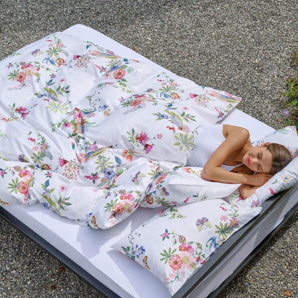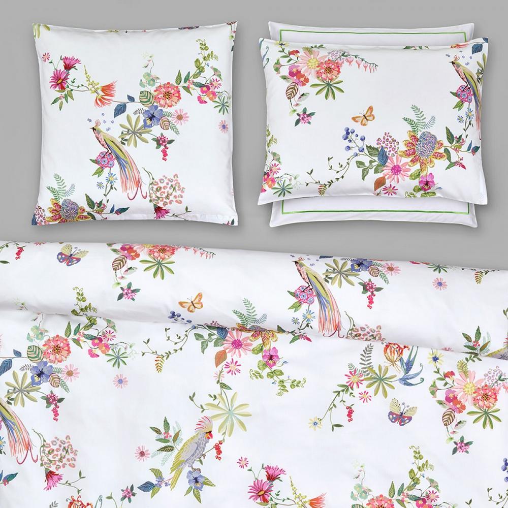 Дизайн PAPAGENA очаровывает изображением экзотических птиц, ярких бабочек и необычных цветов. Узоры сияют разными цветами на светлом фоне и создают ощущение летней беззаботности и стильной элегантности.