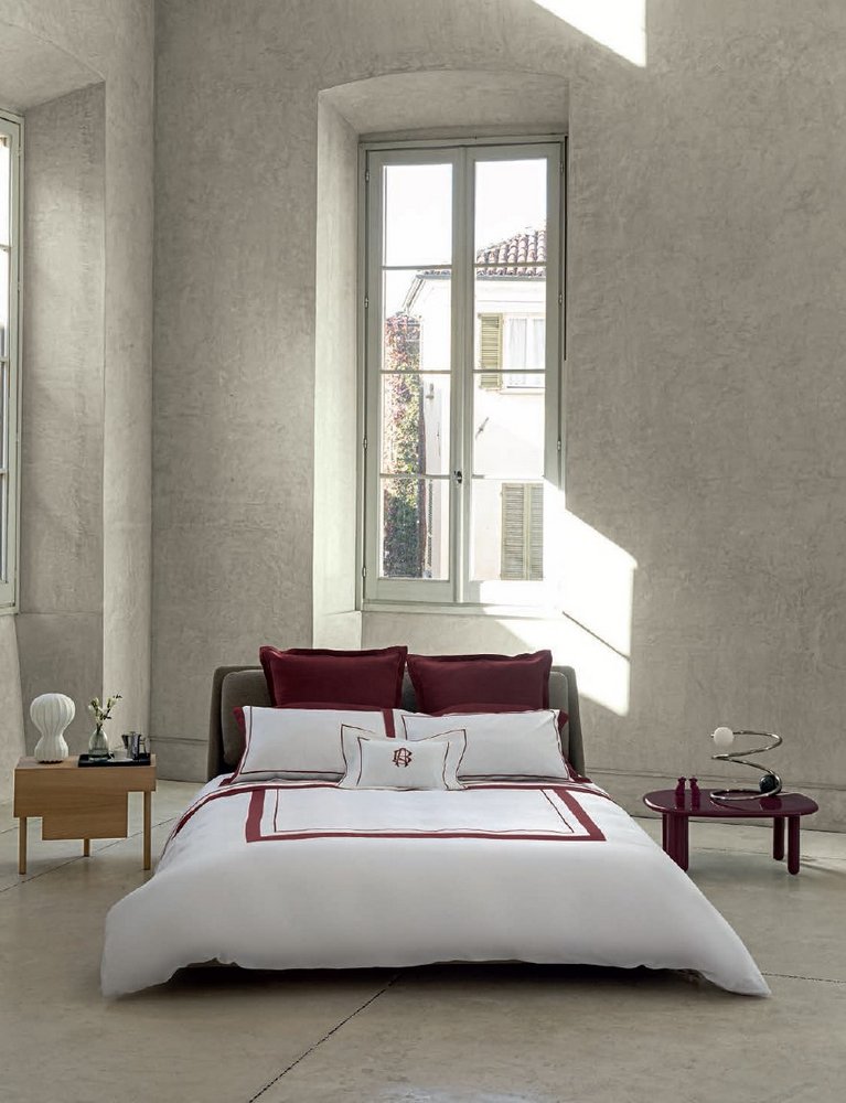 Изделия DARSENA представляют собой новую интерпретацию классического постельного белья, отделанного цветным бордюром селадон, который в данном случае дополнительно украшен вторым профилем, выполненным вышитым кантом.