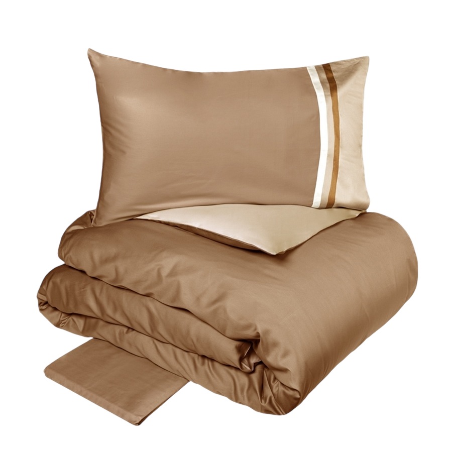 Карамелевый цвет – символ благородства, лаконичности, простоты. Если именно эти черты вы хотите добавить в интерьер спальни, обратите внимание на модель постельного белья KUBRIC от Fazzini. Бренд Fazzini начал свой успешный путь в 1976 году. Успешное сочетание многолетних традиций и производственной эффективности дают компании возможность создавать продукцию на 100% "Made in Italy". Комплект идеально впишется в любой интерьер благодаря отсутствию рисунка и универсальному оттенку полотна. Двуспальный (евро) комплект изготовлен из высококачественного мако-сатина. Элитный домашний текстиль – отличный вариант подарка на все случаи жизни!