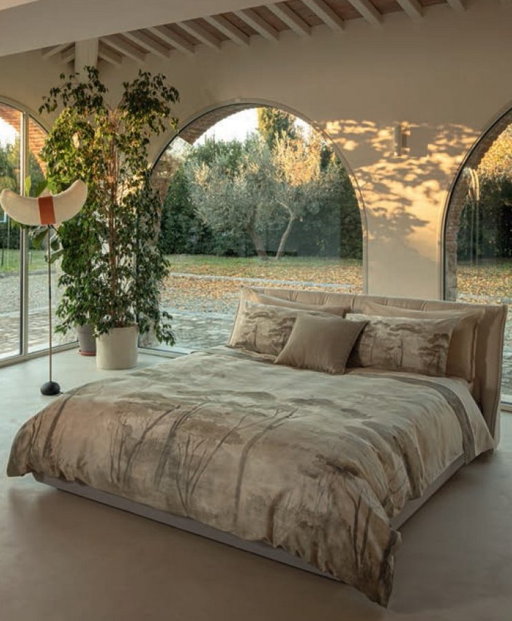 Красота хлопкового сатина и рисунок пейзаж занимает центральное место в коллекции Fazzini и представлена в версии плотностью 300TC в коллекции NEMORA.